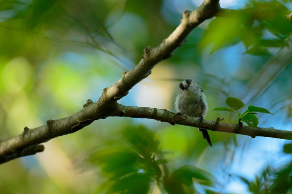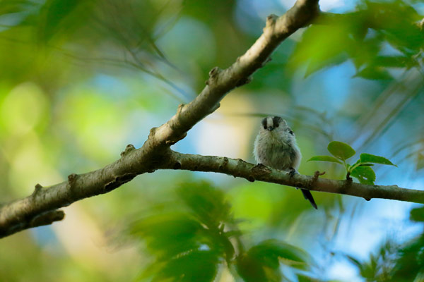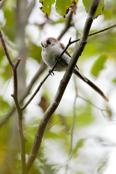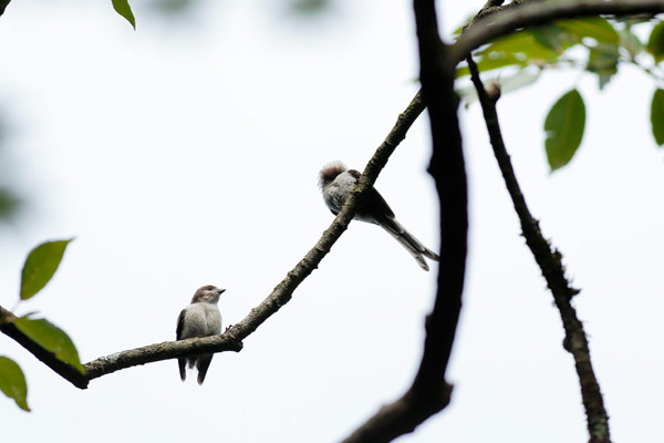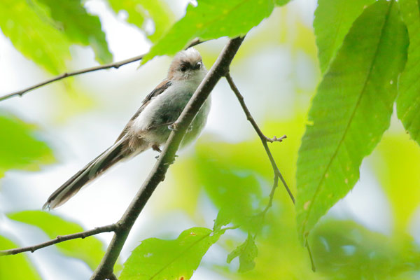 体のちいさなエナガは葉っぱの間に隠れてしまって、