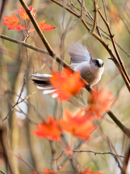 ▲2013年11月9日 毎年狙っている「紅葉とエナガ」。