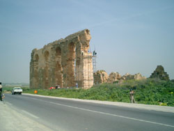 「水道橋」の破損してきれぎれの建造物をカメラに納め
