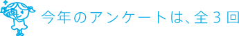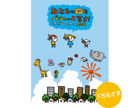 7月24日をはじまりに、 1日1テーマずつ、公開していきますので、 全3回、どうぞよろしくおつき合いくださいませ。 もちろん、その日にしか 答えられないわけではありませんよ。 一度公開した質問は、期間内であれば、 いつでも答えることができます。 テーマに答える順番は、 その1→その2 →その3の順番です。 その1から順に答えていってくださいね。 3つのテーマを、全部まとめて答えたいっていう人は、 7月27日以降にここを訪れていただければ 一気に全3回分を答えることができます。 そうそう、このアンケートの締切は 8月8日(金)午前11時です! 期間内であれば、いつ答えてくださってもOKですので どうぞ、ご都合のよいときにお答えくださいね。 すべて答えてくださったらとてもうれしいですが、 ひとつでもふたつでもかまいませんよー。 ![]() 今年のアンケートにも、