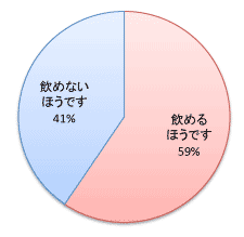 「飲めないほう」が4割と、けっこう多い感じです。 ちなみに、ちょうど1年前に行った 「男のアンケート」でも、 あまり飲まない男性が合計4割でした。 とくに性差なく、世の中の6割は飲めるほう、 4割は飲めないほう、と覚えておいてください。