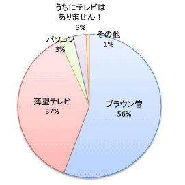 ![]() 最近の放送技術やテレビの進化は目覚ましいですが 実際にみなさんはテレビを買い替えたりされているのかな? ということで、おたずねしました。 なんと、半分以上の方が ブラウン管のテレビ! あっ。「ほぼ日」の“超標準値男”永田は やっぱりブラウン管のテレビを見ているそうです。 へえええ。