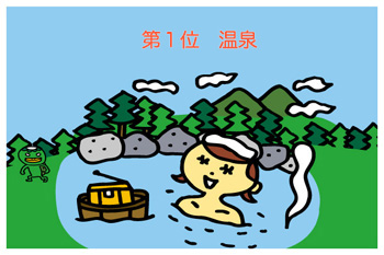 このアンケートの結果、 第1位は、温泉でした。 この時ここでも、「アンケート2008」恒例の 「写真をパシャッと1枚!」をしましたので、 1位以下の結果発表とともに、 スライドショーをお楽しみください。