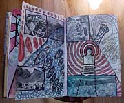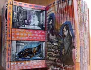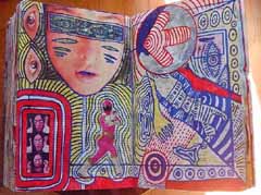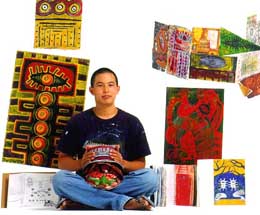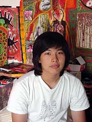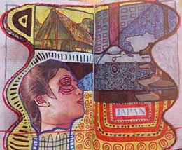 | Lesson18 絶対価値 ----ダスティン・ウォング 17歳の場合---- あなたには、「だれが何と言おうと美しい」みたいな、 自分の絶対的なモノサシってありますか? 今日は、あなたと「絶対価値」について、 考えてみようと思います。 社会や人を基準にするんじゃなくて、 自分の体内磁石のようなものが、 何を美しいとし、何をイヤだと言っているのか。 それに耳を傾けること。 また、人に流されないで、 自分の体内磁石をより素適に育てていくこと。 これらは、やりたいことを発見・実行する基礎です。 自分の絶対価値みたいなものが、 ない人はいないと思いますが、個人差はあるようで。 例えば、会社で、商品のダミーが、 何パターンか上がってきたような時に、 自分の目と耳と触覚で、瞬時に「自分はどれがいいか」 まず、決められる人がいます。 そういう人は、自分が何がよいか知っているので、 柔軟に人の意見と応対できる。 一方、自分の体内磁石が機能しないため、 まわりはどうか? どれが有利か? みたいに、外から、外から判断しようとする人は、 状況によって、ぐるぐる、意見が変わるし、 甲羅で固めたカニみたいに、人の意見を受け付けない。 何しろ、自分で自分はどれがいいかわからないんですもの。 これは、はたで見ていても不自由です。 自分だけの独特の世界や、基準をもっていて、 だから、ふるまいがかろやかで、 周囲に落ち着きを与えられる人、 あなたのまわりにはいますか? 私のまわりにも、いいお手本となる人がたくさんいます。 今日は、具体的な人物に逢って、考えてみましょう。 私は「絶対価値」という言葉を聞いて、すぐ、ある少年を 思い出しました。1年半前のことです。 ![]() これが、16歳の時のダスティン・ウォングくん。 彼に会ったときに強烈に焼きついた言葉があります。 アートは「自分」の暗号 毎日、毎日、絵を描いて、自分の暗号をしている。 解読率はまだ1%だと。 絵で、自分と深く コミュニケーションしているからでしょうか。 彼の言葉は、自分の内からゆるぎなく出て、 まわりに不思議な安らぎを与えていました。 あれから1年半、今、17歳、彼はどうしているだろうか? 自分の暗号の解読率はすすんだろうか? 彼にとっての絶対価値は どんなふうにつくられていってるのだろう? さっそく彼にきいてみましょう。 ダスティン・ウォング君へのインタビュー ●自分の暗号は、進んだか? ![]() ----ズーニ―:こんにちは。 「アートは自分の暗号」という考え方は、 あれから1年半、どう変わった? ダスティン:うーん、あの、ひとつ本を描いた。 でっかい本を描いたのね。 描いたっていうか創ったっていうか。 ![]() ----おおおーぉ!!!すごい! (笑)去年の夏から、今年の3月ぐらいまでかかって。 すっごい、7ヶ月ぐらい。 ----これ、製本はどうしたの? なんか、大辞典みたいなやつで。 家にあって、だれも使ってなかったから、一つとって。 ----辞典そのものに描いた…そうか綴じる必要ないんだ! ![]() して、それ書いてるうちにね、すごい、なんか、なんかもう、 狂っちゃったような気がする。頭が(笑)。 なんか、もう…、もうだめだ!みたいな。 なんかねーすっごいダウンになっちゃう。 なんか俺ってこんなやつだったのか、みたいな。 だから、終わったら、何ヶ月も見てなかった。 見ようとしなかった。ちょっとハッピーな時もあるけどね。 ![]() ----これやろうと思ったときの自分は? もう、やるよ! みたいな。絶対やってやるって。 なんか、アイデアはあったんだ…。 こういう本を一冊つくって。 全部終わった作品として、1ページ、1ページ。 ----これをやってる時は何を考えてるの? 何も考えてないと思う。はじめようかな、ってやると、 気づいたら、終わってたりする時が多い。 集中と、集中してないのと、まざってる。 口でいうのむずかしいんだよね。 ぼーーっとしながら描いてる、でも集中してる。 「よけいなことを考えない」のかな? 音楽、流れてるんだけど、音楽聞こえない。 ![]() ----もう、だめだーみたいに思うときってなかった? スランプとか? うん。やだよね。 紙に向かって、描こうとしてもさ、何も描けなかったり。 いちばん悲しいよね。 もう、何でもいいから描こうとすんだけどね。 終わったやつ見ても、ムカツクのね。 だめじゃん、これ、みたいな。 だから、そういう時は、3日間くらい休む。 ブレイクがいる。燃え尽きちゃうもん、やりすぎちゃうと。 ヤバかったもん、真ん中のへん。 ----そのままそっちいっちゃったらどうなるの? 死んじゃうんだろうね(笑)!! ----表現のために自分に課していることは? …遠慮しない。遠慮はしないようにしてる。 全部、引き出すことにしているから。 だから、もう絵、描くことで全部、その紙に出そうとするから。 ----―人の絵を見るのも好き? うん、大好き! でもね、すごい、ときどきヤなんだよね。 くらべちゃうんだよ。自分のものと、人のものを。 それってすごい、気持ち悪い気分なんだよ。 なんか