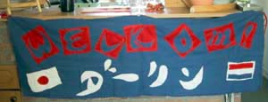 そのメールとは、こちらです!! 昨日、メールをのせてもらった オランダの農家の嫁、京子です。 本持ってサインもらいに行くという国森由美子さんと、 他の暇仲間と、今日は空港で だーりんを待ちかまえる事にしました。 横断幕もつくりましたよー。 ふふふふ。 ![]() ミシンで縫ってあるのがわかるでしょうか?? この旗が空港でお出迎えいたしますー。 うちはオランダといっても、ベルギーのブルージュの近くの ど田舎なので、そろそろ出発せねばなりません。 空港まで3時間です。 それではー。 (京子) ダーリンからも早速メールの返信です!