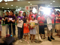 | 【darlingお迎えドキュメント!】 darling帰国について、 スタッフから重要なお知らせがあります。 こちらをご覧ください。 darlingお出迎えドキュメント、 テキスト中継開始です! ここからはいつものテキスト中継風に、 リアルタイムでお楽しみください。 (基本的に携帯電話とメールで状況を聞いています。)
