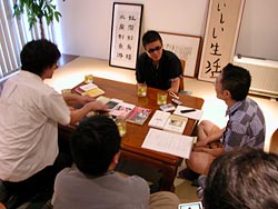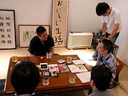 何度かお伝えしていることですが、 今回のイベントは、 ほんとうにほかのメディアからの反応がいいんです。 取材殺到、というのはさすがに大げさですが、 たくさんの方々が、このイベントに対して 純粋に興味を示してくださっているのです。 今回は、本好きの読む雑誌 『ダ・ヴィンチ』さんの取材風景をお伝えします。 なお、この取材の詳しい模様は、 9月6日発売のダ・ヴィンチ10月号に掲載予定です。 「いまなぜ智慧(ちえ)なんですか?」 インタビュアーの永江朗さんからの、 そんなひと言から取材は始まりました。 「智慧」っていう言葉について、 大事なものなんだという意識がずっとあります。 けれど、最近はあまり聞かれなくなってますよね、 「智慧」という言葉そのものが。 ![]() あの、よく話すたとえ話なんですけど、 子どもに、魚を捕って与えるよりも、 釣り針と糸を与えて、釣りのやり方を教えたほうが、 子どもは飢えなくてすみますよね。 それが「智慧」のわかりやすい姿だと思うんです。 だから、「知恵を持ってたほうが、生きられるんだ」 というふうなことを、 もっと自信をもって言うべきなんじゃないかな。 そういう時代なんじゃないかな、って思います。 「智慧」の大切にされる時代がくるという予感は すでにあふれていると思うんです。 たとえば料理ブームなんていうものも、 智慧に対する憧れがあると思うのです。 おいしいものをつくりだす智慧に興味が行く。 その智慧をわかって味わうことをたのしむ、わけで。 そういえば、 中学生だったか、高校生だったか、 なりたい職業の上位に大工が入ってる という話もありますよね。 勉強して学ぶ「知識」というより、 身体にしみつくような「智慧」こそが、 重要なんだってみんな気づき始めてるんだと思う。 いままでは、時代時代に そういった智慧は受け継がれていて、 『おばあちゃんの知恵袋』みたいなスタイルで、 ときどき「智慧」は形になって出てきてましたよね。 あ、『伊東家の食卓』だって、そういう例だし。 こういう例ばっかりだと、生活の工夫みたいだけど、 もっと大きなイメージでも、いろいろありますよね。 たとえば以前、宮大工の棟梁にお会いしたんです。 その人の話を聞いたときにも、すごく感心したんです。 だって、建築でね、 材木をどの方向で配置するか、というときに、 「山の斜面の、どういう日当たりの場所で生えてた木か」 っていうことを考えて、その向きを決めてるんですよ? そんなこと、何百冊のマニュアルを読んだって 修得できないでしょう? まさに智慧だと思うんです。 たとえば、いま、「経済をどうするんだ?」なんて言うと、 ひとりひとりの人が、もう口角泡を飛ばして、 「あいつは間違ってる!」なんて言いあうけど、 なんか、けっきょくどの意見に従っても 大したことじゃないって気がしますよね(笑)。 そういう枝葉だとか、袋小路の頼れない道案内に、 みんなが疲れ果ててると思うんですよ。 ![]() 年取るってことを考えると、 やっぱり時間の話になると思うんですけど、 いまはみんなが、金と時間っていうものに すごく縛られてますよね。 ぼくも人のこと言えないんですけど、 要するに、人を出し抜くには 早くやったほうがいいに決まっていて、 急ぎたくはないんだけれど、 早くやられて負けるのも悔しいから、 腰浮かせながら走って生きてるんですよ。 でも、それはそれで、すっごい疲れるんです。 人間の生理として尋常じゃないわけだもの。 しかも、そんなに時間を気にして急いだ揚げ句に 欲しがってるものが何かっていったら、 ゆっくりした時間だったりするんですよね(笑)。 いつもいつも戦争してるんだったら 急ぐことも必要なのかもしれませんけど、 そういうわけじゃありませんから。 やっぱり、生きててなにがうれしいんだろう っていうところに、必ずいくと思うんですよね。 戦いを中心とした人生論みたいなものっていうのは、 ごく一部の限られた局面でしか使えないもので。 で、それ以外っていうのは、心身ともに、 気持ち良く納得してるのが、いちばんご機嫌ですよね。 欲しいのはそこなんだと思うんですよ。 そういうふうに考えたとき、一方に、 放蕩するがごとく時間ってものを使っている、 豪華なお年寄りたちがいるんですよ(笑)。 世の中では、みんながハアハア息を切らせて 慌てて生きているのに。 そういう豪華なお年寄りの話を聞くと、 なるほどと思うことがすごく多くて、 とってもおもしろいんですよ。 年齢に関しては、 いろいろ考え方あるんだと思うんですけど、 60代ってまだ生々しく社会に触ってるんですよね。 たとえばいまは、定年が60とか65だったりするから、 60代の人は「あー、会社にいたほうがよかったな」って 感じてたりするんですよ。 だから、その人に話を聞いても、やっぱり、 「頑張ろうぜ」になっちゃう気がするんですよ。 でも、70の坂を越えると、 「あれ? 知らないうちに俺、こっちの世界に