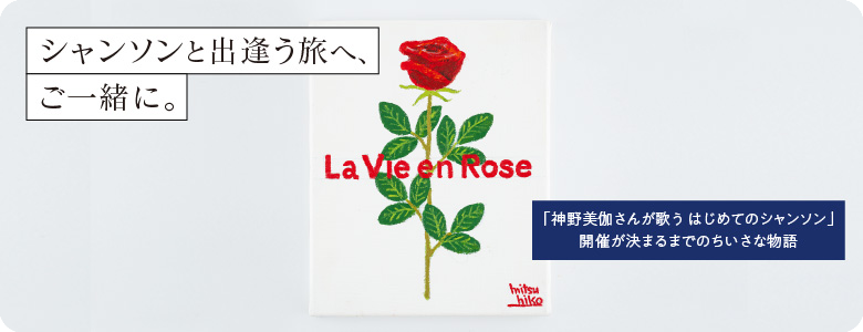 演歌歌手の神野美伽さんが歌う「はじめてのシャンソン」A席のチケットをお取り置きいたします。リンク先のフォームからお名前や希望枚数等をご記入ください。チケットのお渡しとお支払いは2025年11月15日(土)17時より、会場(東京赤坂・草月ホール)の受付にて承ります。