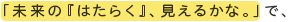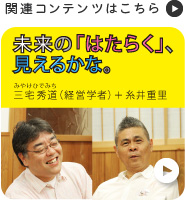 | まずはどんなお話から‥‥と思ったんですが、 先日、糸井さんと対談させていただいたときに、 (「未来の『はたらく』、見えるかな。」) 未来の「あたらしいはたらきかた」を 模索する方法のひとつとして、 「会社に高校生たちを入れるのはどうだろう」 というアイデアがありましたよね? |
