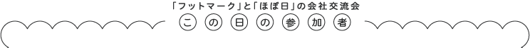 | 本日はこのような機会をつくらせていただき、 ありがとうございます。 今日は、特にテーマを決めずに、 フットマークのみなさんと「ほぼ日」のみなさんの、 「ざっくばらんな交流会」のようになればと思っています。 どうぞ、よろしくお願いいたします。 |