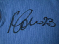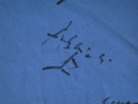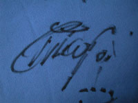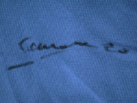 さて、読者のみなさんからのメールに 「アズーリの選手のサインが見てみたい!」 というものがありました。 ぼくも職業柄、サインを頼まれることが多いのですが むむむ、じつはこれ、けっこう難しいのです。 (なかなかチャンスがないものなんです、 肝心のデル・ピエーロにはなかなか会えないし) で・も。 ぼくと、友人であり辣腕女流スポーツジャーナリストである ラウラさん(一緒に来ている仲間です)とで 協力して集めてきたサインが ちょうど11人ぶんそろったので、公開しちゃいましょう! なかなか実物を見る機会ってないものね。 では、どうぞ。 どれが誰のサインかわからないですね。 こんなかんじです。