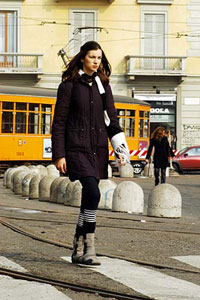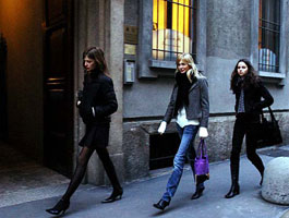 この街で発表されるファッション・コレクションの数々は、 新しく、よりモダンな美しさを提案することで アンティークな舞台に新しい魅力を加えてくれます。 2004秋冬コレクションを ランウェイ上にくりひろげるために、 モデルたちがぞくぞくとミラノに到着しています。 彼女たちの、なんと美しいこと!! 世界中の男たちが(わかりやすいですよね、 男の欲望っていうのは)称賛を送る彼女達ですが、 この時期は、ふつうにミラノを歩いています。 「ふつうの」という意味で、イタリア語では 「隣の家にいるような」と安易な言い方をしますが。 さすがにスーパーモデルたちは、 めったにお隣さんには、いそうもない美しさです。 ![]() ![]() ![]() 流行りのバール、たとえば モンテナポレオーネ通りのCovaや マッテオッティ通りのSaint Andrewsなどで、 この時期の朝にはよく 彼女たちをみかけます。 昼のファッション・ショーに備えて、 彼女たちの飲むカプチーノは砂糖抜き、 そのほか口にできるものといえば、 フレッシュ・オレンジジュースくらいです。 最近ではもっとシックに、 にがいグリーン・ティーを、というモデルもいますよ。 幸運にも街の通りで彼女たちに出会えた人は、 たとえ車を運転中でも、そちらを見ずにはいられません。 おっと危ない、事故をおこしますよ〜。 でも人がどんなに彼女たちを見ても、 彼女たちは知らん顔です。 彼女たちが夢うつつの目で見ているのは、なに? たぶん白馬の王子様のことを夢みているんでしょう。 自分たちは21世紀のシンデレラってところでしょうか。 ランウェイに赤いじゅうたんを敷いて 魔法のお城まで連れていってくれる王子様を、 彼女たちは夢見ているようです。 たしかに、すらりとした長身で、 ほどよい恥じらいをそなえた女性らしさのある 彼女たちの美しさは、 王子様にしか手がとどかない感じではあります。 (やっかんでるわけじゃありません。) そう、まさに王子様というべき、 ブラジルのカー・レーサー 故アイルトン・セナの恋人だった、 伝説のカローレ・アルトも 今年はミラノにもどってきました。 彼女を、そして彼女のあとにつづくであろう モデルたちを、ファッション関係者が その目で穴のあくほどみつめています。 ![]() カローレといっしょに。う〜ん美しい! ミラノはすてきです。 でも真冬のこの期間には、 ひときわ美しく魅力的です。 ランウェイ上で発表される服を、 数カ月さきには、 あちらこちらで目にすることになるでしょう。 それを着て美しく、 美しい女性はいちだんと 美しくなっているところを、ね。