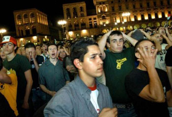 トッティは第1戦に出場しましたが、あろうことか デンマークの選手につばを吐きつけたことで、 失格処分になりました。 ![]() デル・ピエロは1ゴールさえ決められませんでした。 彼のプレイは色褪せ、情熱の感じられないものでした。 ヴィエリは、これはまた大仰でノロノロしていて、 カバだかサイだか、あの硬皮動物の一種みたいでした。 この3人のチャンピオンがイタリア代表チームを ヨーロッパの頂点に導くべきだった、主力選手たちですよ。 これでは、勝てるわけはありませんでした。 ![]() 総てにネガティブな遠征試合ではありましたが、 唯一の救いはアントニオ・カッサーノの台頭だったと 言えるでしょう。 22才の、この若いアタッカーは、 まさにトッティの失格によってメンバーに入れられ、 そのまま出場しつづけました。 出場しつづけたと言っても 2試合にも満たない時間でしたが、 彼はその中で2ゴールを決め、 ヨーロッパ中のサッカー界の注目を集めたのです。 ![]() さて、アズーリはこの敗退の苦悩と苦さと、 そこに追いかぶさるイタリアの ティフォーゾ全員の叱責の中で、 ポルトガルを去る時には、 まるでぎくしゃくしていました。 ![]() ![]() ![]() ポルトガルでのアズーリは、 イタリア人が最も愛さない姿のイタリア代表でした。 そして、 この負けには、なんの申し開きの余地もありません。 人々は、もはや確信しました。 イタリアのサッカー選手は今や金まみれで、 コマーシャル出演の契約や、 ファッションショー見物や、 テレビに出演することばかり考えている、 彼らにとってプレイは二の次なのだ、と。 いまや、なにもかもが流行の真似事なのです。 トッティは第1試合の時に妙な髪型で現れました。 ベッカムが去年していた格好に 似ていると言えなくもないような‥‥ カモラネージの頭はといえば、 これはなんと昔の侍(samurai)みたいでした。 ザ・ラスト・侍を気取ったつもりでしょうか。 アズーリに大金を注ぎ込んだスポンサーたちは、 イタリアの敗北に怒りまくっています。 あるスポーツ用品の会社はトッティに対して 怒りがおさまりません。 彼は第1試合の後で、 靴の具合が良くなかったので 良いプレイができなかったと 言ってのけたのです。 そしてアレッサンドロ・デル・ピエロに至っては、 彼の大きなスポンサーである 有名なミネラルウォーターの会社との 契約取り消しの危機におよんでいます。 アズーリはもう良いイメージが無いじゃない、 ということで。 ![]() 監督は、もちろん交代でしょう。 トラパットーニの契約は7月15日までですが、 それを待たずに交代させられる可能性が高いです。 イタリアのフェデレーションはすでに、 次の2年間のためのアズーリの監督には マルチェッロ・リッピを予定していると言っています。 彼は、ユベントスのティフォーゾには人気がありますが、 ACミランやインテルやローマのティフォーゾには 好まれてはいません。 ![]() トラパットーニがアズーリの監督になった時には、 イタリア人の誰もが彼を歓迎したものです。 マルチェッロ・リッピは今のところ、 イタリアの半分、つまり彼が長く監督していた ユーヴェのティフォーゾにしか歓迎されていません。 彼がイタリア代表の監督として 全イタリアの好感を得るためには、 さっそく「彼のアズーリ」が以前より優れていると 証明しなければなりません。 とりわけ「勝てる」ことを見せなければ、ね。 まずは2006年のW杯でしょう。 ここでもイタリアが勝てなければ、 リッピもトラパットーニと同じ終わりを迎えるのは 必至です。 ![]()