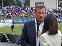 これが発覚した時には、 会社全体がこれ以上ないほどに混乱しました。 さあ、大変!! なんとか解決の手段はないものか? 解決といっても、無理だろう。 莫大な違約金を支払って、許しを乞うのか? いやいや、金で解決できる問題ではあるまい。 かたや、インテルのティフォーゾも多く、 ヴィエリ、アドリアーノ、レコバ、カンナヴァーロなどの 黒青シャツのチャンピオンたちも人気のある日本での、 価値ある国際的な親善試合。 もう一方は、イタリアで行われる 各45分の親善試合がふたつ。 会場のサン・シーロ競技場は、 新監督ロベルト・マンチーニのインテルを見る為の ティフォーゾたちで満席になるでしょう。 これらの試合は、 すでに重要なテレビ局に売ってしまっています。 すったもんだの挙げ句に、 7月14日水曜日、 やっと決断がくだされました。 両契約とも決行!! およそ35人の所属選手が いつでもプレイできる状態を保っているこのチームを、 7月27日は、ふたつに分けようという決断です。 インテルは大チームです。 もちろん正選手がきっちり11名しかいないのではなく、 11名がピッチに入り、すぐにも出場できる状態で ベンチ入りしている選手もふくめた18名が正選手です。 これに予備選手を加えれば、 ふたつに分けても8、9名の正選手を各チームに使えます。 7月27日、ひとつのチームが 日本の埼玉で親善試合にのぞみ、 もうひとつがその9時間後に イタリアのミラノで トロフェオTIMに出場するわけです。