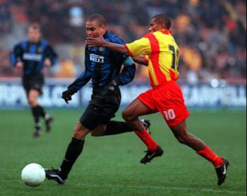 いや、それは無理でしょう、ロナウド君。 インテルのティフォーゾは、 全員とは言わないまでもその多くは、 もはや君を愛していないと、ぼく、フランコは思うよ。 2002年6月、横浜で、 ロナウドはドイツ代表に向かって 2本のゴールをたたきこみ、 ブラジルがW杯に優勝しました。 その試合の後で彼はテレビをとおして たくさんの人に感謝の言葉をおくりました。 ブラジル代表の仲間たちに、 Psvやバルセロナの責任者たちに、 彼が所属したことのあるヨーロッパのチームに、 ロナウドは感謝しました。 ブラジルのクルゼイロに居た時のことを 話したりしましたが、当時彼が所属していた イタリアのインテルについては ただの一言もいわずに終りました。 確かに当時のインテル監督のクーペルと彼は 仲たがいしており、不満があったかもしれませんが、 インテルの「イ」の字すら彼の口から出なかったことは、 インテルの側としては当時の会長モラッティから ティフォーゾの末端にいたるまで、 全員があぜんとして、気を悪くしたのです。 そしてその6月の夜からロナウドは、 インテルを離れる準備を始めたのでした。 事実上、彼はレアル・マドリードに身売りし、 インテルのティフォーゾの大多数が、 裏切られたと感じて彼を嫌悪しはじめました。 彼らは事故のあともロナウドを待ち、 その回復を望み祈りつづけたのですが、 ひとたびW杯に優勝した後は、 ロナウドはまるで知らない人のようになってしまったと 彼らは感じたのです。 彼のサッカーの詩的で優しい表現や、 ボールを足にとらえた時に見せる 果てしない想像力は人びとを魅了し、 イタリアでも彼は誰もに愛されたものでした。 でもね、今となっては すべてが変わってしまったのですよ。 またもやユーべに負けた彼は、 もう強そうには見えないから要らないのかって? いいえ、それ以前の、もっと単純な理由で イタリア人たちは彼に「帰っておいで」とは 言わないのです。 その場しのぎのすべり止め的な選択じゃないのか? と、ななめに見てしまうのです。 だって、W杯の主要選手の座を勝ち取り、 世界一の人気も実力もある選手になった時に イタリアを出て行ってしまったのに、 そのキャリアにかげりが見え始めた今、 戻って来たいと言われてもね。