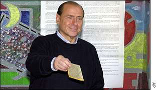 ここ4年間、また首相の座にいるベルルスコーニの政党は、 ローマのあるラアツィオ州や、 ミラノのあるロンバルディア州など、 イタリアの裕福な州の知事の座を獲得すべく 立候補者を立てています。 そして、投票者をより多くつかまえるために、 彼は何年も前のトリック、つまり「サッカー効果」に、 またもや、すがってます。 ACミランは現在、カンピオナートのトップであり、 イタリア・チャンピオンのタイトルは目前です。 UEFAチャンピオンズ・リーグでは8強に残っており、 先週ここで書いたように、準々決勝戦では 伝統的なライバルであるインテルと対戦します。 もちろん勝ち進んでヨーロッパ・チャンピオンの タイトルも勝ち取ろうとしているわけで、 その野望は、もう止まらない勢いです。 ![]() ベルルスコーニは今まで、 ACミランの重要な勝利の場面の 数々に立ち会っています。 イタリア人たちが他のどんな事より サッカーが好きなのを見て取った彼は、 イタリア国民が彼に投票したくなるようにと、 一度ならず 「私はイタリアを勝ち組の国にする、 私のACミランのような」と 公言しています。 イタリア国民はといえば、 あらゆる政治的な判断とはかけ離れたところで、 4年前、つまりベルルスコーニが選ばれた時よりも 悪い状態に置かれています。 たぶんヨーロッパの諸国もイタリアと同じように、 苦しい状況下にあるのですが、 ベルルスコーニのACミランほど 政治にまで力のあるチームは、どこにも無いでしょう。 スペイン、イギリス、ドイツ、フランス、オランダなどの チームのどれかがUEFAチャンピオンズ・リーグに 優勝したとしても、ベルルスコーニのチームほど 影響力の強いチームは、 どの国も持っていないということです。 サッカー・チームのオーナーでもある立場を、 一国を統治する能力になぞらえる首相など、 他の国には存在し得ないのですから。 テレビや新聞はベルルスコーニ自身に コントロールされており、 ACミランに起こることについては 「賞賛」以外の何もしません。