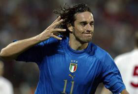 | アズーリの新星 9月7日水曜日のドイツW杯予選で、 イタリア代表チームのアズーリは ベラルーシに4対1で勝ちました。 これで、来年ドイツで行われるW杯本戦に イタリアが参加するためには、 勝ち点をあと1点加えれば良いところまで来ました。 予選の残り2試合はイタリアで行われますし、 対戦相手がモルドヴァとスロヴェニアで、 あまり強敵ではありませんから、 イタリアの予選通過は、ほぼ決定です。 さて、この対ベラルーシ戦で、 アズーリの新しいヒーローが生まれました。 28才になった今、遅咲きながらも 一躍有名になったセンター・フォワードの ルカ・トーニです。 ![]()