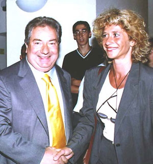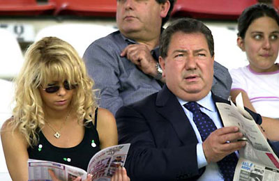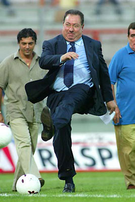 そんなルチアーノ・ガウッチですが、 感じが良すぎるくらいな好人物だと、 だれからも思われていました。 ‥‥誰からも好感をもたれるように 気を配っていたのでしょうね。 中田購入のあと、彼はほかにも 外国の選手を何人も購入しました。 しかも前例のない国から。たとえば最初の韓国人である アン・ジョンファですが、彼は日韓共催W杯で イタリアを敗退させることになりましたね。 それから最初の中国人、最初のイラン人、 そして世界中の大きな話題となった 「リビアのガダフイ大佐の息子」を呼んだのも、 ルチアーノ・ガウッチです。 ![]() ルチアーノは可能な限りのテレビ放送に出演し、 自分自身についてしゃべりまくり、そして、 彼のチームのひとつであるヴィテルベーゼのためには、 女性の監督、カロリーナ・モラーチェを採用しました。 アンコーナ、カターニャ、サンベネデッテーゼと、 つぎつぎにサッカーチームを手に入れ、 つねに美女たちをはべらせ‥‥、 そして最新の恋人はなんと彼の息子の元恋人です。 ![]() サッカーの世界に入る前は熱心な競馬の愛好家で、 彼のもっていた純血種の馬(サラブレッド)は、 世界でもっとも有名なレースのひとつである l'Arc de Triomphe (凱旋門賞)に、 パリで勝利しています。 その馬はトニービンという名前で、 凱旋門賞で勝ってからしばらく後に、 種馬として日本の牧場が買いとりました。 ![]() 名馬、サッカー、お金、美女たち‥‥ 夢のようだと思う男性が、 世界各地にたくさんいることでしょう。 でも、その夢は仕掛けがバレて突然にこわれ、 いまや悪夢という本性をさらしています。