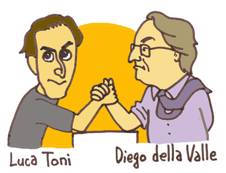 そしてぼくはカルチョ・メルカートに戻ります。 不正な試合と、それにまつわる賭けの スキャンダル後のプレイを見せるイタリアサッカーに。 そこではイブラヒモヴィッチが ACミランとインテルの間で危うい平衡状態にあり、 世界チャンピオンのルーカ・トーニが 稼ぎを3倍にしようとして、 フィオレンティーナを離れたがっています。 フィオレンティーナのオーナーであり、 靴のトッズのオーナーでもある ディエゴ・デッラ・ヴァッレは、 何が何でも彼を手放したくありません。 どれもまるで「腕相撲」みたいで、 今のところ誰が勝つのか分かりません。 ![]() ACミランは、カカをレアル・マドリードに 売りたくありません。 その一方でACミランは、 オーナーのベルルスコーニが 6千万ユーロも使う用意があるらしいにもかかわらず、 バルセロナからロナウディーニョを買えないでいます。 そして対レッドスター・ベルグラード戦で UEFAチャンピオンズ・リーグに新たに参戦する ACミランがプレイする‥‥そんなサッカーに、 つまり、いつものぼくの仕事に、ぼくは戻ります。 ぼくがパレルモとシチリアにいだく郷愁は、 次のバカンスのある来年の夏まで、 ぼくと一緒にいてくれるでしょう。 ![]()