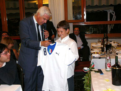 | アズーリ新監督、 ロベルト・ドナドーニへのインタビュー。 先日ぼくは、あるパーティーに出席しました。 主賓はイタリア代表チームであるアズーリの 新監督、ロベルト・ドナドーニ氏で、 そのパーティーは、まさに彼の故郷で開かれました。 ミラノの北東に位置するベルガモの近郊にある、 チザーノ・ベルガマスコという街です。 少し風のある涼しい秋の宵でした。 その晩餐会は招待によるものでしたが、 チャリティーで集められるお金は、 視覚障害のある子どもの病院を援助するために 寄付されることになっていました。 W杯に優勝したチームを監督するという 困難な遺産を引き受けたロベルト・ドナドーニですが、 このパーティーでの役割も大変に感激して引き受けました。 選手たちも参加したかったことでしょうが、 金曜日の夜に催された会でしたから、 次の日にはカンピオナートを闘う選手たちにとって、 スケジュール的に出席は無理でした。 でもカカとインザーギは自分のシャツを、 お馴染みのオークションのために出品していました。 カカのシャツは1500ユーロ、 インザーギのは1600ユーロの値がつきました。 1600ユーロで24万円弱ですから、 とても良い値段ですね。 でもそれ以上で最高額を付けたのは、 もう1人の世界チャンピオン、 ジェンナーロ・ガットゥーゾのシャツです。 2200ユーロを支払ったのは裕福なお医者さんで、 そのシャツをご自分の10才の息子のために 競り落としたとのことでした。 ![]() ドナドーニ監督自身は、 200ユーロで渡される小さなボールと、 100ユーロの何枚もの写真にサインしました。 ![]() この夜、 選手たちのシャツやボールや写真の代金と、 そして晩餐に参加した人びとの寄付も合わせて、 視覚障害の子どもたちの病院に贈られるのは 10万ユーロを超える額となり、 誰もが幸せそうでした。 ![]()