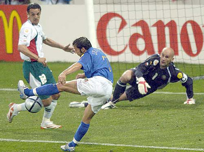 代表をはずれてもイタリアのカンピオナートでは、 ユヴェントスに残った彼はセリエBでプレイします。 これまでに彼はユヴェントスのシャツを着て 199ゴールを印しています。 でも、年令は消せません。 彼は現在32歳で、10年以上もの 最高レベルの主役としてのキャリアを進めてきました。 UEFA EUROの1996、2000、2004年大会、 W杯では1998フランス大会、2002日韓共催大会、 そして世界チャンピオンに輝いた2006ドイツ大会、など、 彼はいつも偉大な立て役者として試合に参加していました。 それはアズーリのメンバーとして 大きな責任を果たした人生であり、 サッカーにおける “まさに桁外れな”キャリアでした。 時の神は無情ですね。 32才という年令は、ひとりのサッカー選手として 決して「年寄り」とはみなされないとしても、 デル・ピエロの場合は、故障が彼につきまとっていました。 ロナウドに次ぐ世界最強サッカー選手たちの中に 数えられながら、 1998年のカンピオナートの試合中に受けたひどい事故で、 彼はほぼ2年間も試合から遠のかざるを得ませんでした。 ドイツでのW杯優勝は 彼のキャリアを引き延ばしたかに見えました。 あの勝利が不老長寿の妙薬のように 彼を若返らせてくれたのではないかと‥‥ しかしアズーリの新監督ドナドーニは、 彼をもう任務の水準にないとみなし、 UEFA EURO2008の予選のために、 事実上、彼を代表チームから外しました。 デル・ピエロはイタリアサッカーで 最も愛された選手のひとりです。 いや、今も「愛されて」います。 彼のプレイはいつも、 着ているシャツの色など忘れさせるほどなので、 ユヴェントスに属さないティフォーゾからも 賞賛され評価されています。 彼は「ユヴェントスの選手」というよりは、 だれにとっても「桁外れの選手」だったのです。 ロベルト・バッジョという もう一人の桁外れな選手がつけていた10番を、 ユヴェントスで彼が引き継いでいたのは 決して偶然ではありません。 引き継ぐべくして引き継いだのです。 そして、デル・ピエロのような選手たちが年令によって 代表チームという舞台を去らなければならないのは、 大変に残念なことです。 彼はユヴェントスでプレイを続けますが、 じゃあ何も変わらないじゃないかとは言えないでしょう。 だって、ユヴェントスのティフォーゾが愛するのは チームカラーの白と黒ですが、 アズーリの青はイタリアサッカーを愛する人の色です。 その青をデル・ピエロがもう着ないとなれば、 イタリアサッカーを愛する全ての人びとにとって、 あまりに寂しいことです。 ![]()