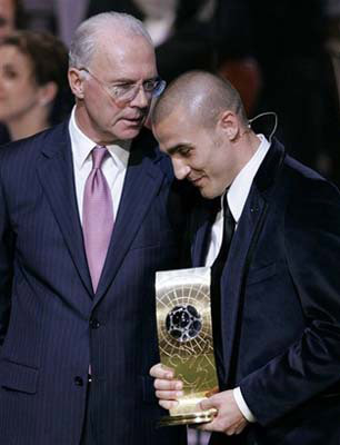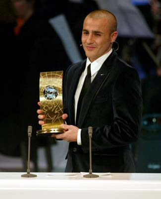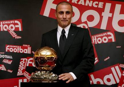 やがて彼はセリエAの選手になり、 パルマ、インテル、ユヴェントスと経験を重ねて、 現在はレアル・マドリードに在籍しています。 そして今年2006年7月と12月に、 このスクニッツォが大切に大切に育ててきた夢の すべてが実現しました。 サッカー選手がその腕で空にかかげることを夢見る 3つのカップを、カンナヴァーロは全部かかげました。 まず7月9日に、 イタリア代表キャプテンの腕章を付けた腕でW杯を。 ![]() そして12月には、 ヨーロッパ年間最優秀選手に与えられる バロン・ドール賞と、 FIFA年間世界最優秀選手賞を。 これは今まで ディフェンダーに与えられた例のない賞です。 バロン・ドールは イタリアの人気女優 モニカ・ベッロッチから手渡されました。 ![]() それを受け取った時にカンナヴァーロは 「夢を信じなくちゃいけない。 ぼくはいつもこの時を夢見ていた、 いつも夢を信じていた、 そしてこのすべてをナポリの少年たち、 ぼくがそうだったような スクニッツォたちに捧げる。 君たちはサッカーをやりなさい、 良くない友だちから離れなさい、 何かを信じなさい、 人生の夢は叶えることができるんだから。 このカップが、その見本だ‥‥」と言って、 カップにキスをしました。 FIFA年間最優秀選手賞は、 昨年の受賞者ロナウジーニョから手渡されました。 そしてカンナヴァーロは、 これもナポリの少年たちに捧げました。 ![]() イタリア共和国首相は、 彼に模範的市民として賞を与え、 今やカンナヴァーロは 単にサッカー界で最も多くの賞を受けたイタリア人の サッカー選手であるだけはなく、 人生で成功したいと願う若者や、 その道のりで多く「しでかした」スクニッツォたちの、 全員のアイコンでもあるのです。 ![]()