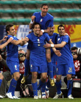 3月28日に、イタリア代表のアズーリは スコットランド代表とデリケートな対戦をしました。 アズーリはユーロ08の予選を勝ち進むために、 勝利の3ポイントを得る必要があったのです。 アズーリのドナドーニ監督は、 ルーカ・トーニの志気が高められるように チームを組み立てる決断をし、 その期待は裏切られませんでした。 ルーカ・トーニは2ゴールをヘッドで決め、 それがスコットランドを打ち負かす決定打となり、 同時に、彼が次のカルチョ・メルカートの 方向を決める男として、 再び脚光をあびることになったのです。 ロナウジーニョは 日ごとにACミランに近寄っています。 そしてベルルスコーニ会長は、 彼を手に入れるためなら途方も無いことをする 用意がある上に、 このイタリア前首相が ロナウジーニョという別格選手を バルセロナからかすめとって契約することに、 イタリアでは誰も対抗できないように思えます。 ルーカ・トーニ獲得に関しては 完全な競争が始まっています。 ほとんどクリスティーズにかけられたゴッホや ダ・ヴィンチの絵のように、 彼の値段が日ごとに上がっているのを見て、 フィオレンティーナもチームの益になると気付いた時、 競売の幕が、 いよいよ切って落とされることになるでしょう。 ![]() インテルのスクデット獲得は、 もはやほぼ確実です。 1908年に創立されたこのチームが、 来年100周年をむかえるにあたって、 モラッティ会長は、 ヘッドが大得意で、しかし足でも優秀な、 身長196cmという巨大フォワード選手である ルーカ・トーニを、ティフォーゾたちにも 自分にもプレゼントしたいはずです。 永遠のライバルどうしであるインテルとACミランは、 いつも近い状況にあるように見えますから、 ACミランが将来的にロナウジーニョ弾を獲得できた場合に、 インテルにとってのトーニ獲得は、 それに応酬する理想的な道でしょう。 そのACミランも、 じつはトーニを獲得したがっています。 トーニ、ロナウジーニョ、カカをレギュラー登録し、 ロナウジーニョとトーニを組ませることは、 ACミランの思い描く夢の攻撃体勢です。