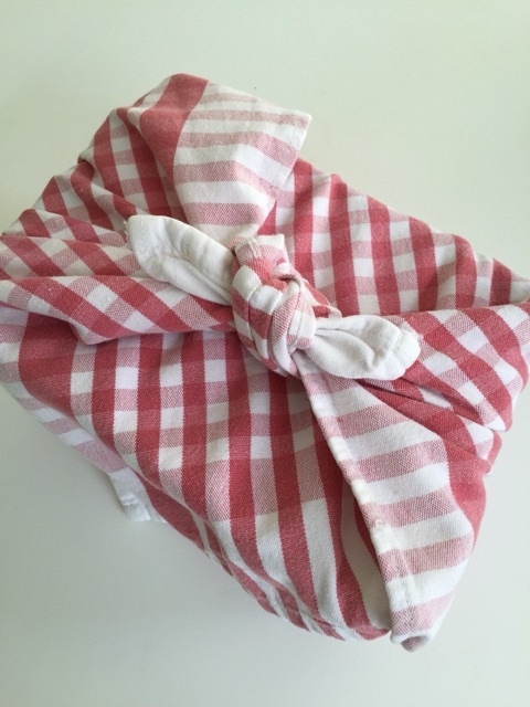 気持ちが明るくなるような、かわいい赤いチェックのクロスで包み、