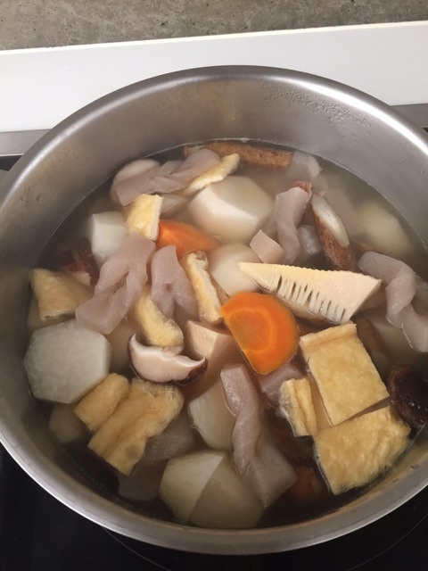 油揚げ、たずなこんにゃく、にんじん、たけのこ、