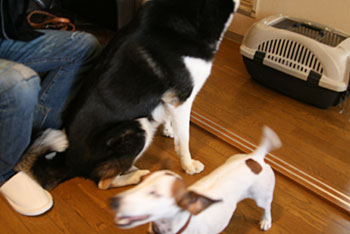 (近づいてきた富士丸に向かって威嚇) ワン、ワン! ワン、ワン、ワン! (明らかに怒っている) ![]() |