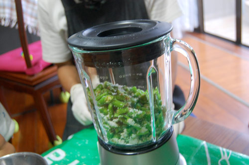 フミ子式は種ごと使うので、種も気にせずチョキチョキ。