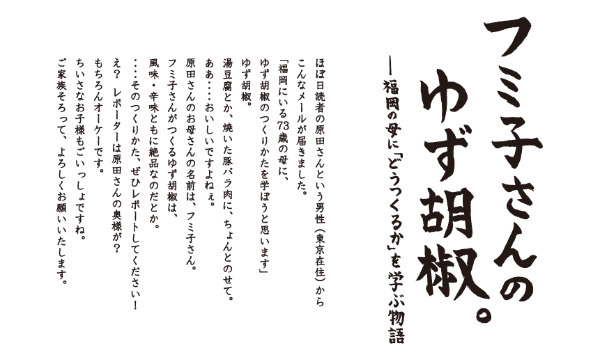 息子が母親の作るゆず胡椒の味に惚れ込み、