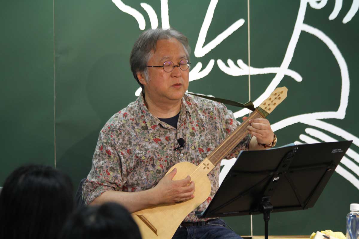 さて、授業が終わると、そこからは放課後タイム――。岡ノ谷さんがわざわざ抱えて持参してくれたのは、ルネサンス時代の弦楽器であるルネサンスギター、ビウエラ、ルネサンスリュート、ロマンチックギターの4本でした。愛蔵の楽器でシェイクスピア時代の曲を奏で、「シェイクスピアと豊臣秀吉」(No.35)で紹介した「天正少年使節」が関白秀吉の前で合奏したという曲の披露にまでおよび、この日は“古楽器愛好家”として締めくくったのです。
