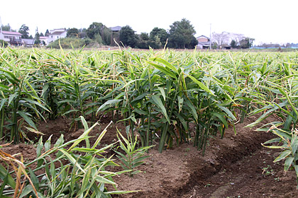 で、いよいよ畑に到着しまして、 これが、しょうが畑なんです。 |