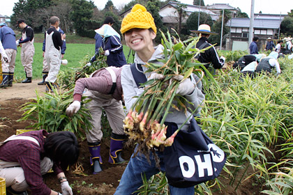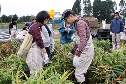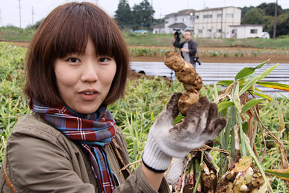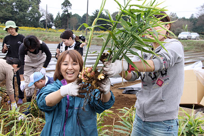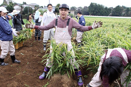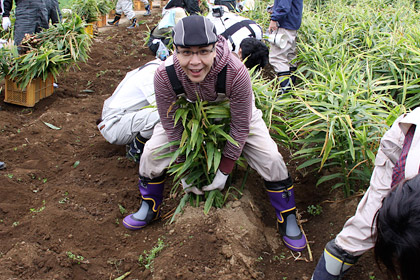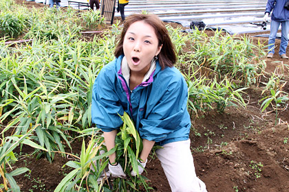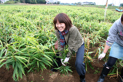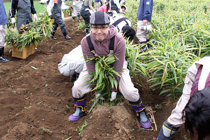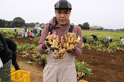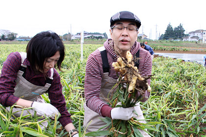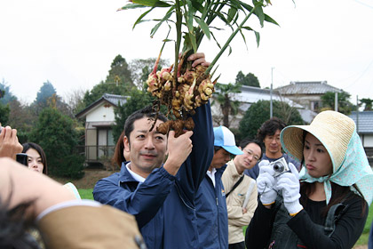 はい。 新しょうがを収穫するときには、 この親しょうがも忘れず掘り出すよう、 「永谷園生姜部」の部長さんから 事前に指導がありました。 |