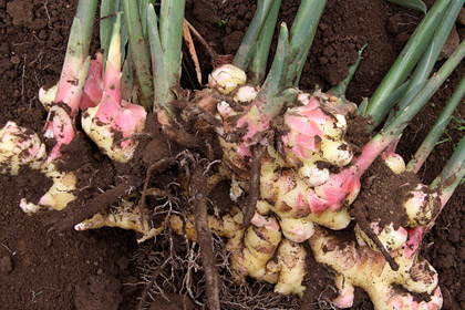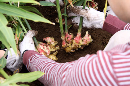 しょうがってこんなふうに、 横に広がって育つんですね。 |