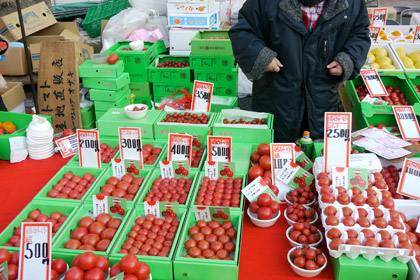 ひと山100円かぁ‥‥。 これが「産地」ということだよなぁ。 |