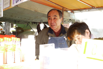 茂さんもここでイカ焼きをやってたんですが、 知り合いにわけていたしょうがシロップが とても評判がよかったので、 6年ほど前から販売するようになりました。 |