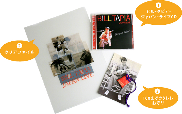 「100までウクレレ」お守り、クリアファイルをつけた