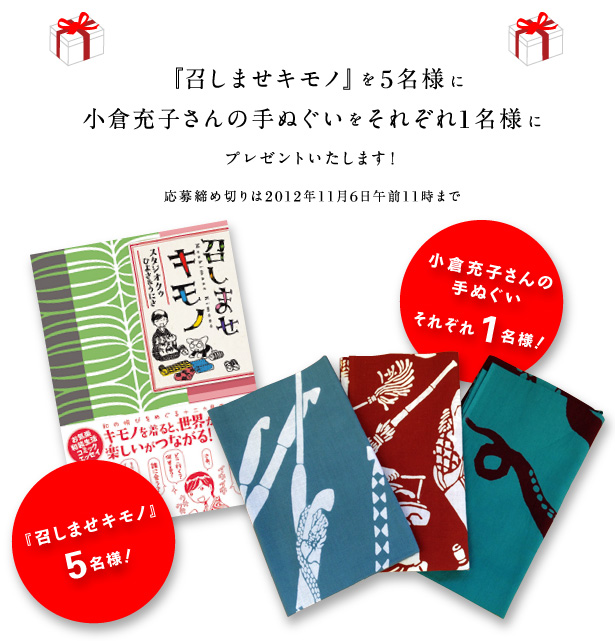 江戸型染め作家、小倉充子さんの手ぬぐいを3つ