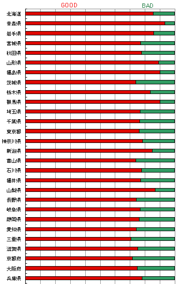 90%以上の方がGOODでした。 メールを紹介させていただきます。 ■■■■■■■■■■■■■■■■■■■■■■■■■■■■■■■■ アメリカに住み始めて1年。 コンビニが懐かしい!!! いきたい!!! だからGOODイメージで。 アメリカのコンビニは”強盗の起きるとこ”の イメージなので、行く機会はありません。 すぐ食べられるものが 山のように選択できていいじゃん!!! ハンバーガーだけじゃない。。。恋しいので つい想いが強くなってしまいました。 (ぞみぃ) 今回のテーマは、少し悩みました。 独身時代、「私の有料冷蔵庫」と命名するほど すっごくお世話になって、コンビニがないと 生きて行けないとも思いました。 でも、深夜にたむろする今時の若い人たちや 疲れた顔でコンビニ弁当を買うサラリーマン (私もそうでした)、 大した目的もなく雑誌の立ち読みしている人たちを 遠くで見ると、ある種の心霊スポットを 想像してしまいました。 すっごい便利だけど、BADイメージです。 (あう) 50代専業主婦です。 コンビニって、とても便利で助かります。 と思うようになったのは、ごく最近な気がします。 買い物というよりは、公共料金の支払、宅配便の発送 そして最近は銀行のATM利用、チケットサービスなどです。 ついでに、変わった種類のおにぎりをみつけたり あったかいおでんを買ったりしてます。 以前は、学生やお勤めの人が利用するものと思ってました。 主婦が足を踏み入れるには、ちょっと躊躇したものです。 なまけものって言われてるような雰囲気でした。 それが、最初は離れて暮らす子どもに 宅配便をしょっちゅう出す事になり 田舎の家の公共料金は、コンビニ支払となり コンサートのチケットを取るのをおぼえ・・・と なにかにと便利に使えるようになりました。 最近では、もっとお年寄りが使いやすいといいのに と思っています。 小人数のお年寄り世帯にはコンビニのご飯はきっと、 ちょうどよいし、実際お惣菜を買う人は、多いみたいですよ。 (HN) コンビニ、goodに投票しました。 子供の頃から夜更かし大好きだったので、 結婚して初めて住んだアパートから 徒歩2分でコンビニが出来た時には もう嬉しくて嬉しくて。 以前、1階がコンビニのマンションの 4階の事務所で働いていましたが、 勤務中なんか階下が騒がしいのでベランダから覗くと、 パトカーが。 強盗が入ったとかで、ブルーシートが敷かれ、 警察の人が靴を脱いでなにやら調査中でした。 なんだか強盗に狙われやすいイメージも勝手に持っていて、 たまに通販の料金支払いに行ったりした時、 心の中で「コンビニ頑張れ」とエールを送っています。 夜中に支払いに行ったりするので、 こうこうと輝く灯りを見ると嬉しくなります。 (金沢の塩婆) 東京だと、そうでもないのですが、 わたしの郷里、長野県のいなかの町は、 昔ながらの商店がどんどんつぶれて、にぎわっているのは、 コンビニ、広大な駐車場付きの大型スーパー、 ファミリーレストラン、だけ!なのです。 それをみるたび、 「なんかとっても楽チンではあるけど、 あからさまにお仕着せ、な服装」を 選ばされているようで、さみしい気持ちになります。 そういう印象があったので、 便利で明るいコンビニですが、 わたしはBADに入れました。 今からはこれしかない! と思い時代の先端を切ってはじめたつもりのオーナーです。 確かに最初は輝いていました ところが、待てよ??? これでいいのかな?????? という点が沢山出てきています 食べ物の無駄な廃棄、未成年者の夜遊び、万引きの横行 コンビニの是非を問うなら、ウウウウウウ〜ン 近頃はBADな気持ちが強くなりました (開いてて良かった? オーナー) 23歳から4年間ほど コンビニ店のマネージャーとして働いていました。 年中無休24時間営業の厳しさは 半端じゃありませんでした。店の管理、バイトの管理、 商品の発注ももちろん毎日。 自分の休みは予定としては 「週いち」で貰えるはずだったのですが、 バイトが急に休んでしまったりすると 店に駆けつけないわけにはいかずに 気づけば2ヶ月休んでないなんてことはざらでした。 自分はコンビニ辞めてずいぶん経ちますが、 今現在そういう立場にいる人たくさんいるんでしょうね。 実際、そういう人たちなしでは 成り立たないのがコンビニです。 その人たちにエールを送る意味でも 今回GOODに投票しました。 (ちゅうたろう) すっきりは割り切れませんが、BADです。 コンビニにお世話になることもあるので、 あまり悪くも言いたくないのですが、 数が多すぎます。しかも、どれも同じで没個性。 深夜でも開いているのは便利だけど、便利さと引き換えに、 電力消費などの環境負荷から 「いつでも買えるから慌てなくていいや」という 計画性の欠如まで、いろんなものを代償に 支払っているような気がします(ちょっと考え過ぎかなあ)。 以前住んでたドイツでは,法律でお店の営業時間が決まって いましたが(飲食店以外は,普通18時まで)、 それで
