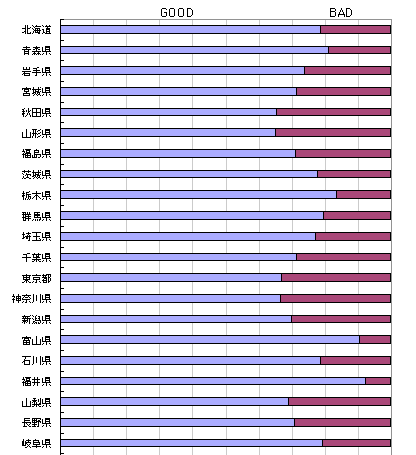 都道県別にGOOD or BADを見てみました。 バラバラ…のようですが、何か傾向が見えてくるでしょうか?