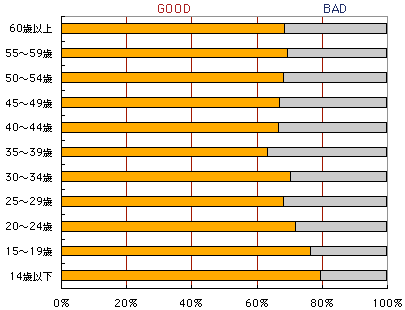 まっさいちゅうの、「ゴールデンウィーク」です。 リクツはとにかく、自分自身の気持ちが、 こいつをグッドイメージ(GOOD)でとらえているか、 バッドイメージ(BAD)でとらえているか、 率直に答えてください。 どちらでもない、という気分の場合は、 むりやりにでもどちらかに決めてくださいね。 ついでなので、年齢層と性別と地域もクリックしてね。 あとで、傾向なんかを探ると、また遊べそうだから。 ついでに、テーマとしてとりあげてほしいモノゴトも 募集いたします。 宛先は、メールで goodorbad@1101.comまで。 タイトルは、必ず、「モノゴト」としてくださいね。 (締め切りは、6日(火)中です。 結果は7日(水)に発表します。 次の更新は、11日(日)の予定です。) |