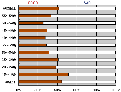 年齢別に見てみると…、 働き盛りの世代にBADが多いような?