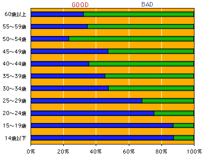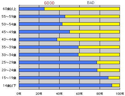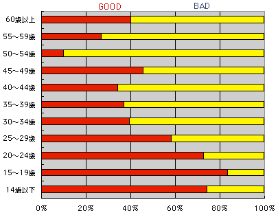 年齢別に見てみると、 はっきりと違いが現れました。