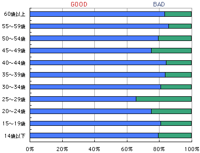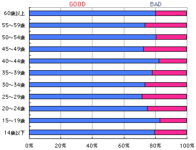 リクツはとにかく、自分自身の気持ちが、 こいつをグッドイメージ(GOOD)でとらえているか、 バッドイメージ(BAD)でとらえているか、 率直に答えてください。 どちらでもない、という気分の場合は、 むりやりにでもどちらかに決めてくださいね。 ついでなので、年齢層と性別と地域もクリックしてね。 あとで、傾向なんかを探ると、また遊べそうだから。 ついでに、テーマとしてとりあげてほしいモノゴトも 募集いたします。 宛先は、メールで goodorbad@1101.comまで。 タイトルは、必ず、「モノゴト」としてくださいね。 (締め切りは、19日(火)中です。 結果は20日(水)に発表します。 次の更新は24日(日)の予定です。) |