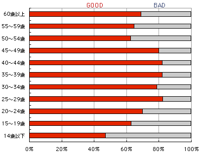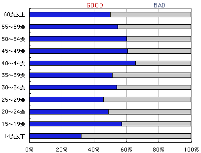 男女別のGOODorBADです。 女性は非常にGOODが多い という結果でした。