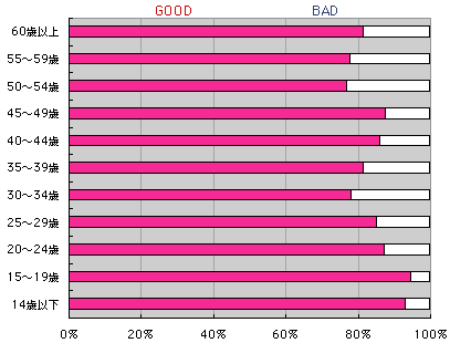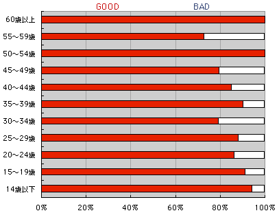 男女別のGOODorBADでは、 女性の方がお年玉に厳しい、という結果でした。