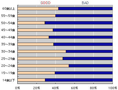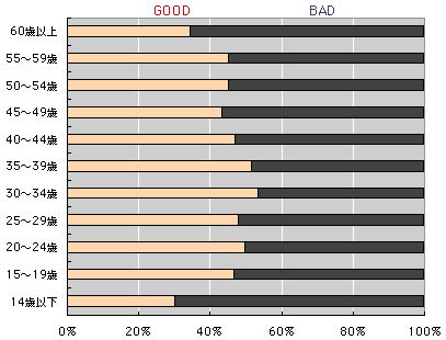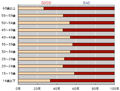 男女別のGOODorBADです。 男性の方が、ぐっとBADが多くなっています。