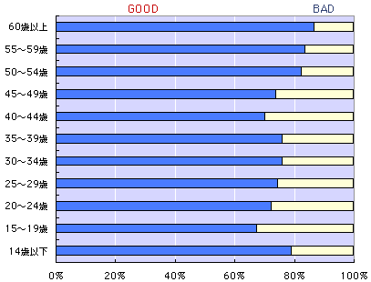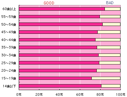 リクツはとにかく、自分自身の気持ちが、 こいつをグッドイメージ(GOOD)でとらえているか、 バッドイメージ(BAD)でとらえているか、 率直に答えてください。 どちらでもない、という気分の場合は、 むりやりにでもどちらかに決めてくださいね。 ついでなので、年齢層と性別と地域もクリックしてね。 あとで、傾向なんかを探ると、また遊べそうだから。 ついでに、テーマとしてとりあげてほしいモノゴトも 募集いたします。 宛先は、メールで goodorbad@1101.comまで。 タイトルは、必ず、「モノゴト」としてくださいね。 (締め切りは、9日(火)中です。 結果は10日(水)に発表します。 次の更新は14日(日)の予定です。) |